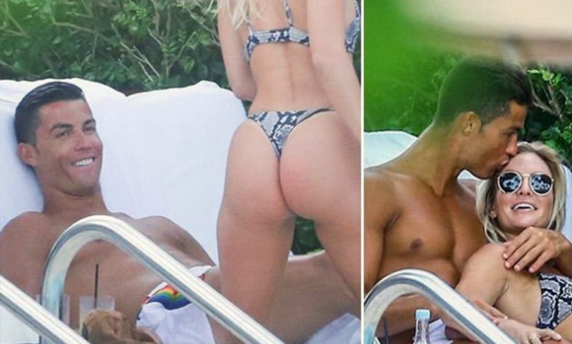 На фото, попавших в испанские таблоиды, Криштиану целуется с Кассандрой в бассейне или возлежит с ней на шезлонгах. На снимках, где девушка прогуливается рядом, футболист, про ориентацию которого ходит множество безумных слухов, не без удовольствия любуется огромной попой подружки, «украшенной» крошечными стрингами.
