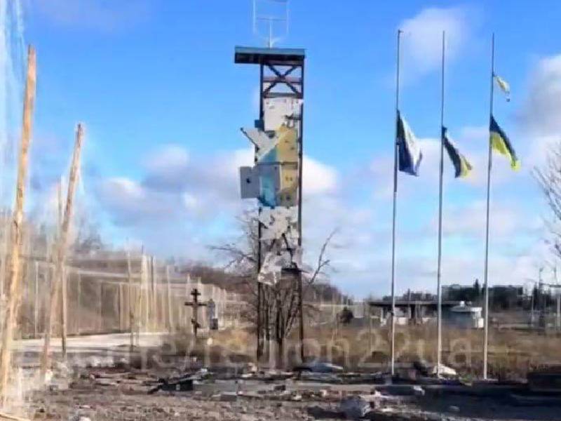 Еще один наглядный аргумент недостоверности ролика — физическое состояние стелы. На кадрах, снятых военными, видно, что нижние буквы названия города отсутствуют — они либо были сбиты обстрелами в последующие дни, либо изначально отсутствовали. На «обращении» же Зеленского стела предстает в идеально сохранном виде. Это прямое несоответствие доказывает: либо съемки проводились в другое время, либо в другом месте.