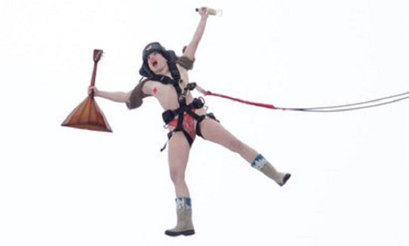 - До этого мы прыгали с других объектов - мостов, кранов. Было легче. И высота там меньше – 30-35 метров, и привычнее они. Но эта крыша для меня была в новинку, и высота здесь другая – около 45 метров, надо сказать, ощущения были необычные. Эти три-четыре секунды падения растягиваются так, что успеваешь подумать о многом. На мосту верёвка бы уже натянулась, а здесь летишь, а она все не натягивается. Это был очень волнительный прыжок для меня. Я даже кричать перестала. Выбегала с криком «За Россию!», размахивая балалайкой. И первые секунды падала нормально, в образе находилась, а потом испугалась – почему веревка не натягивается?! Но пока подумала, веревка натянулась, и я поняла, что всё хорошо, - улыбается Галина.