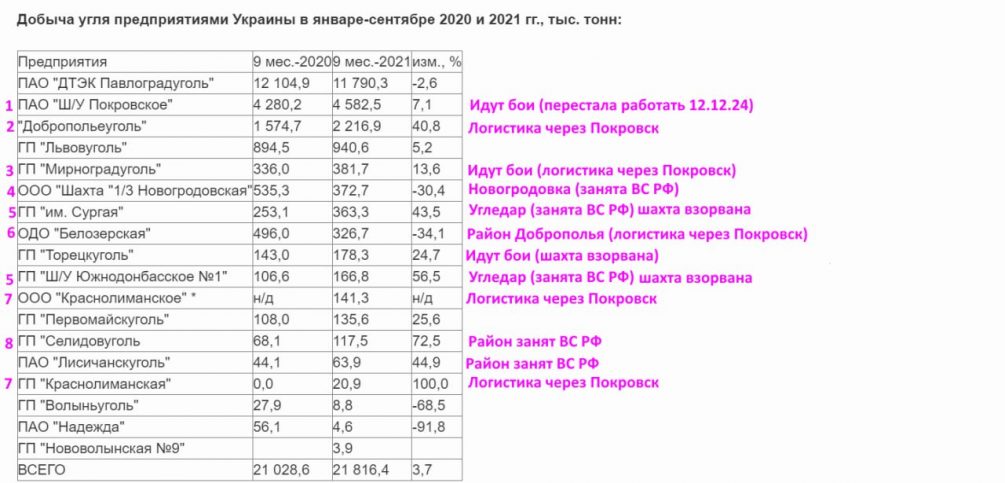 Без угля из этого региона украинская металлургия может столкнуться с катастрофическими последствиями — производство металла может сократиться примерно на 4-5 миллионов тонн в год, что составляет почти половину от довоенных объемов. Это также повлечет за собой значительные финансовые потери для бюджета страны. Кроме того, угольная промышленность западного Донбасса организована таким образом, что именно Покровск служит главным логистическим узлом для вывоза угля. Все железнодорожные пути сходятся здесь, что делает этот город критически важным для функционирования всей угольной отрасли.