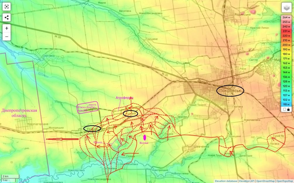 Южнее Покровска наши войска активно сражаются у Успеновки, движутся строго на запад в сторону Днепропетровской области.