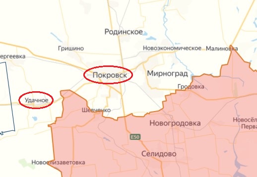 При успешном развитии обстановки в Удачном Новопавловка, также, может оказаться в оперативном окружении, что значительно усложнит ситуацию для противника. Западнее Славянки и Петропавловки открывается оперативный простор для дальнейшего продвижения в направлении Днепропетровской области. Это создаёт возможности для фланговых ударов по важным транспортным узлам на направлениях Срибное - Запорожье - Богдановка - Троицкое - Орехово и Андреевка - Алексеевка - Зелёный Кут - Новоукраинка - Дачное. Тем не менее, местность в этом районе довольно пересеченная, с множеством балок и ручьев, что может осложнить выполнение задач СВО. Так или иначе наши продолжают брать Покровск и Мирноград в клещи. Аналогичная история происходила в Курахово, Угледаре, Великой Новосёлке и других городах ДНР. Впоследствии украинцы оказывались в полукотлах и огневых мешках, теряя сотни бойцов при отступлении. Вероятно, такая же участь уготована и Покровску с Мирноградом.