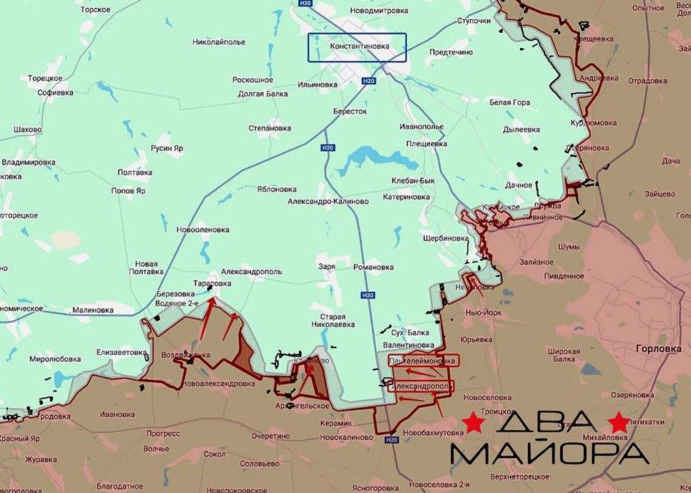Северо-западнее Торецка, в сторону Нелеповки, за последние два дня появилась новая информация с видеоподтверждением. Наши штурмовые группы вышли вплотную к Нелеповке — южнее Иванополья, пригородов Константиновки. Продвижение составило 5,7км. Данных о полном закреплении в населённом пункте пока нет, но сам выход туда указывает на отсутствие плотной линии обороны ВСУ вдоль трассы Торецк — Константиновка. Противник здесь удерживает позиции в основном за счёт дронов, а нехватка пехоты приводит к серьёзным разрывам на линии фронта спецоперации.