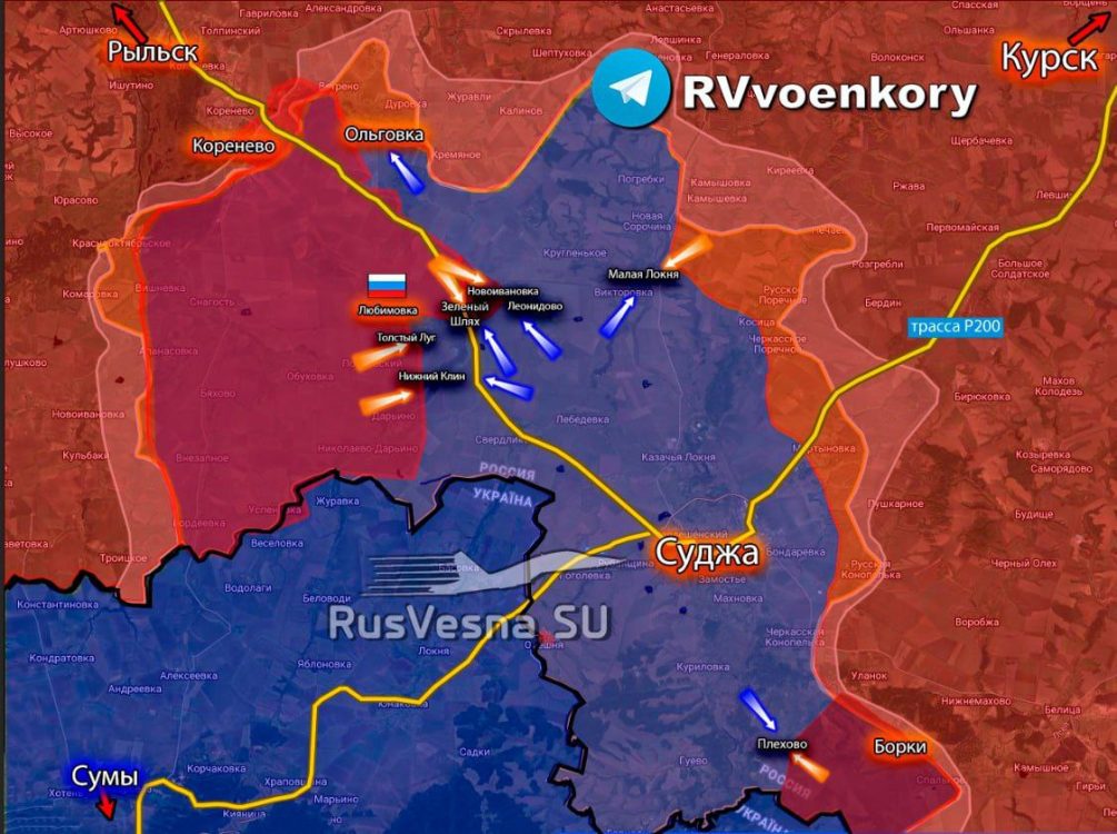 В Суджанском районе российская армия ведет наступление на Плехово, где противник находится в полуокружении. В самых оптимистичных оценках уже сообщается об освобождении этого населенного пункта.