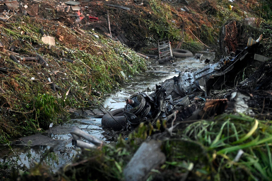 Ан-12 загорелся еще в воздухе, о чём свидетельствует видео, снятое очевидцами, а после удара об землю машина взорвалась.