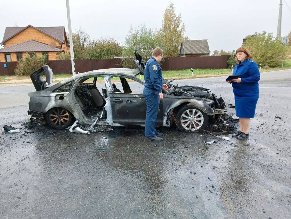 Объятую огнем Audi ранним утром 4 октября обнаружили посреди улицы в деревне Хохловка. Когда спасатели потушили седан, он практически полностью выгорел. В салоне нашли обгоревшие тела двух мужчин.
