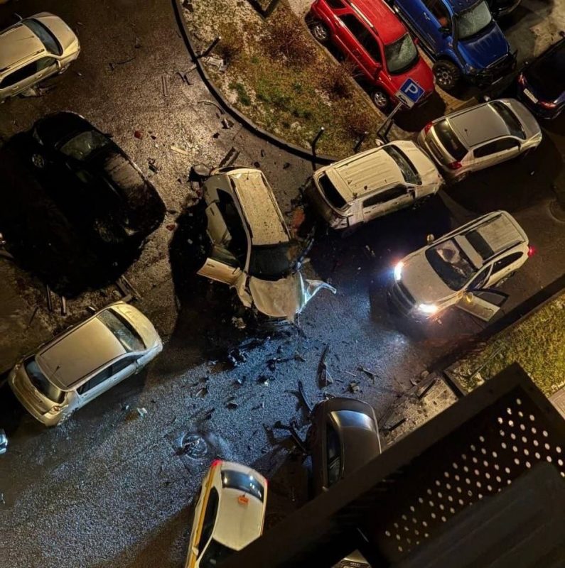 Взрывной волной были повреждены не менее семи припаркованных рядом автомобилей. На месте оперативно появились экстренные службы, однако извлечь водителя удалось не сразу — его зажало в искорёженном салоне.