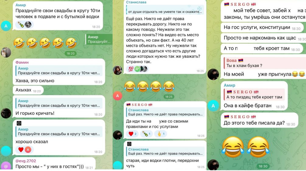 «Да иди ты на со своими правилами и госуслугами. Празднуйте свои свадьбы в кругу по 10 человек с бутылкой водки. Уважайте наши традиции. Забей на все законы и Конституции», - пишут ей в ответ люди, которые, вероятно, были гостями праздника.