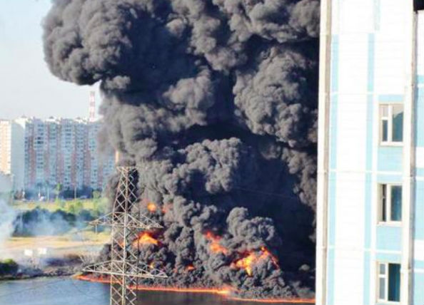 Площадь пожара на воде составила более 100 квадратных метров. Столб густого черного дыма поднялся на высоту 200 метров и виден даже из некоторых районов Подмосковья.