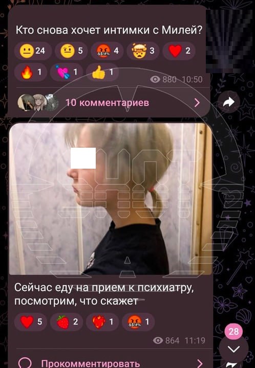 «В частности, речь идёт об употреблении запрещённых веществ, демонстрации груди и голой дочери. За вступление в приват-канал девушка берёт тысячу рублей», - пишут коллеги.