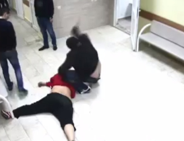 Пока Роману зашивали раны, а Анатолий ждал его, в больницу вломилась толпа. В ней находился и главный участник происшествия - Андраник. На видео заметно, все 40 человек врываются в здание. Заметив Анатолия, мстители набрасываются на него с упреками, а затем его выволакивают на середину помещения и начинают бить. Они доводят пострадавшего до бессознательного состояния, но на этом не останавливаются. Один из мужчин подходит к лежащему парню и начинает наносить сильные удары по голове. Его останавливают друзья.