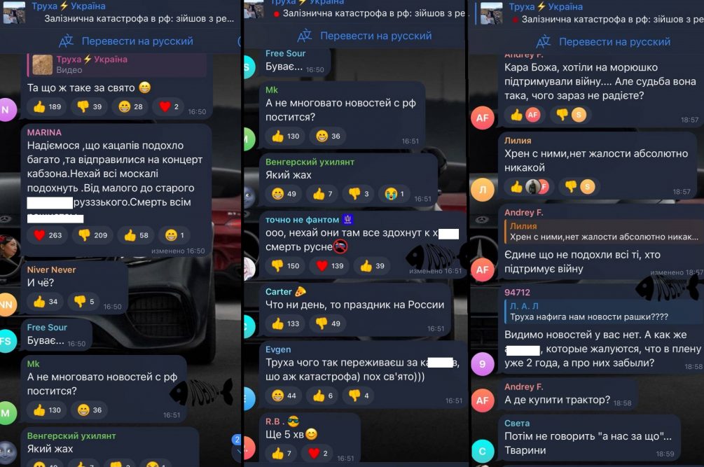 Другие украинцы называют аварию «праздником», «карой Божией» и заявляют об отсутствии жалости.