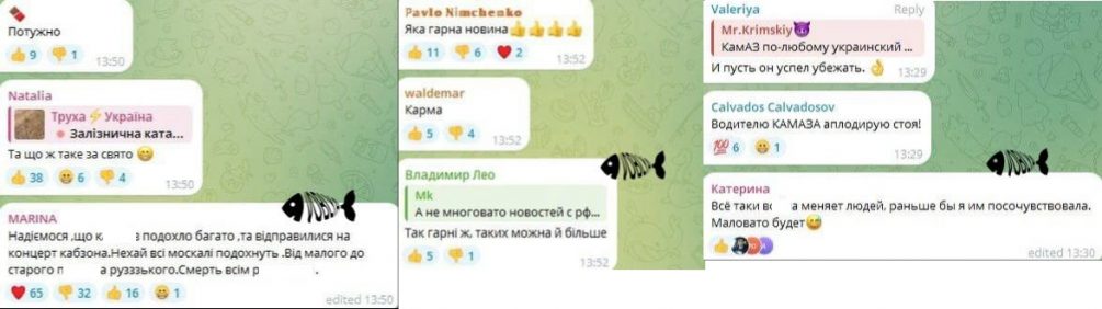 К счастью, в результате столкновения пока никто не погиб. Однако, подобную мысль разделяют не все. Кровожадные читатели украинских Телеграм-каналов и пользователи соцсетей из Незалежной обрадовались произошедшему в России ЧП. В популярном на Украине паблике «Труха», распространяя фейк, заявили о «минимум двух погибших» в результате ДТП. В комментариях под постом начался настоящий бенефис нацизма.