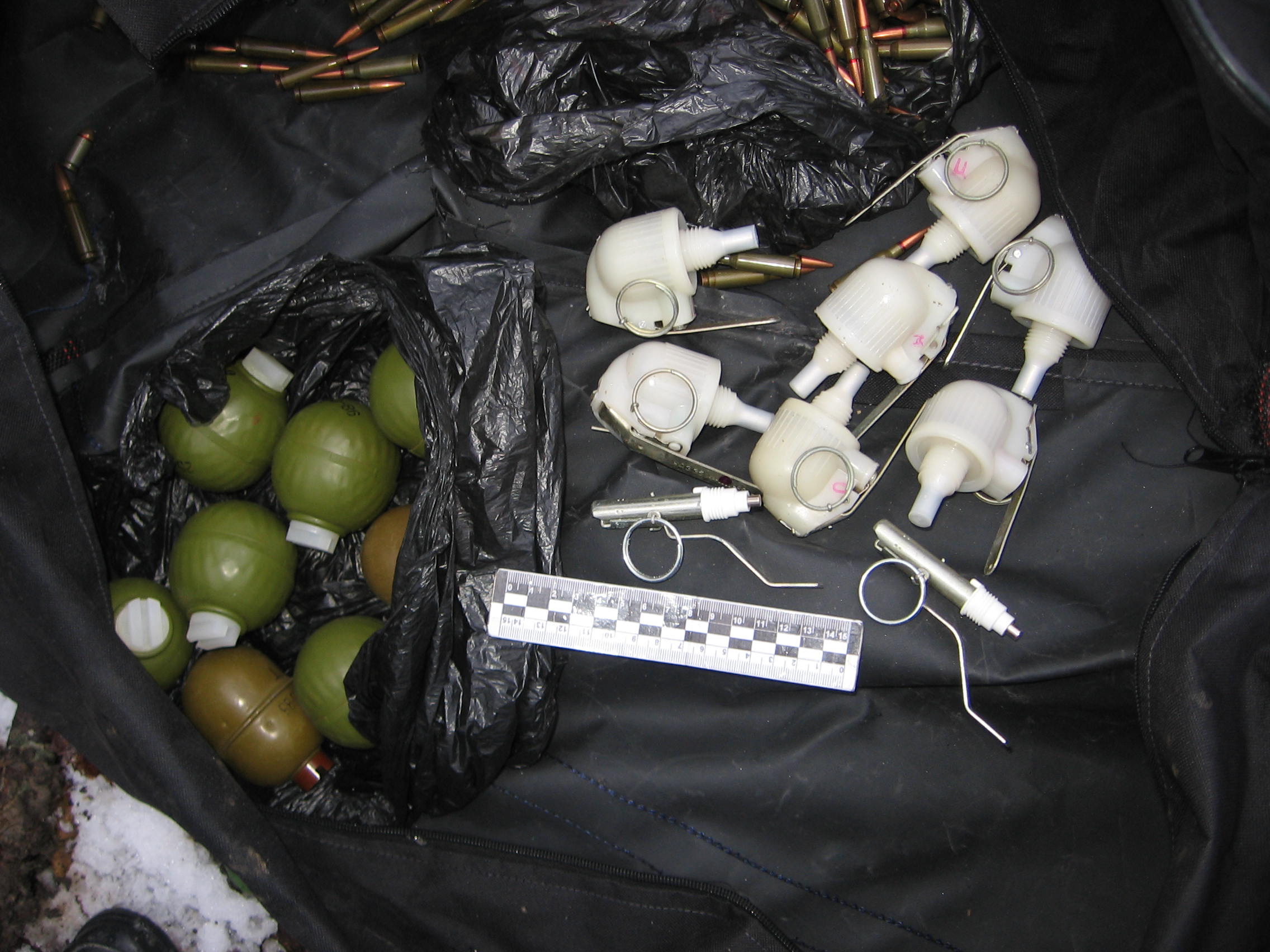Схрон содержал гранаты, боекомплекты к гранатомету, пороховые заряды, большое количество патронов, а также радиостанцию.