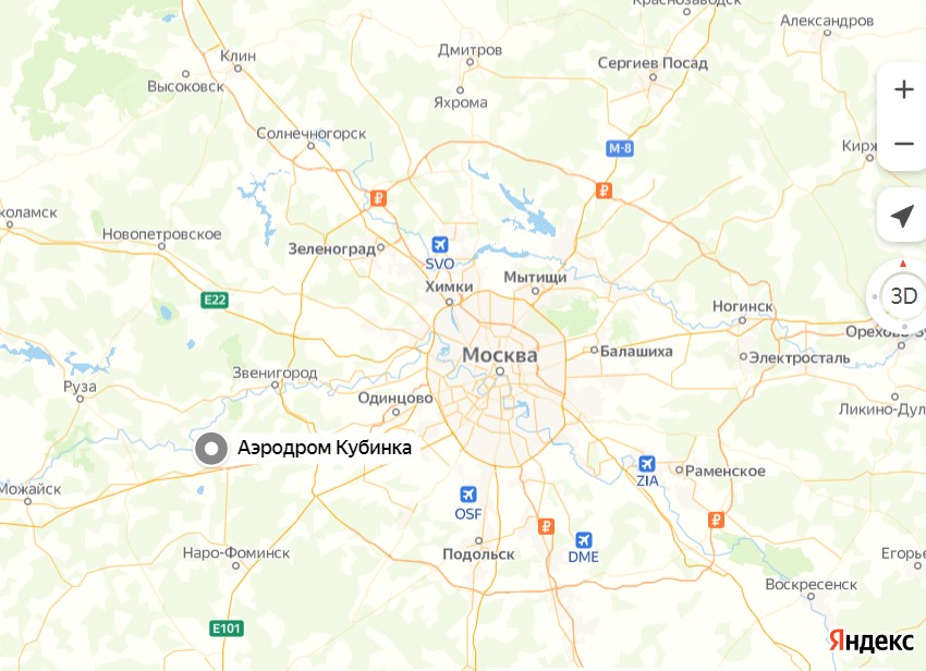 Аэродром основан в 1932 году. Он располагается на расстоянии около 70 км от Москвы. Сейчас на нем дислоцирован 237-й гвардейский Проскуровский Краснознамённый орденов Кутузова и Александра Невского центр показа авиационной техники (ЦПАТ) имени И. Н. Кожедуба. Это самолёты Су-27, МиГ-29, Ан-30. В состав 237-го ЦПАТ также входят пилотажные группы «Стрижи» и «Русские Витязи». Они традиционно демонстрируют фигуры высшего пилотажа над Красной площадью во время Парада Победы, который намечен и в этом году.