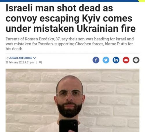 На Украине погиб 37-летний Роман Бродский (по другим данным ему был 41 год), его расстреляли украинские силовики, пишет The Times Of Israel. Мужчина ехал в сторону границы, он хотел покинуть страну, но не доехал до границы с Молдавией.