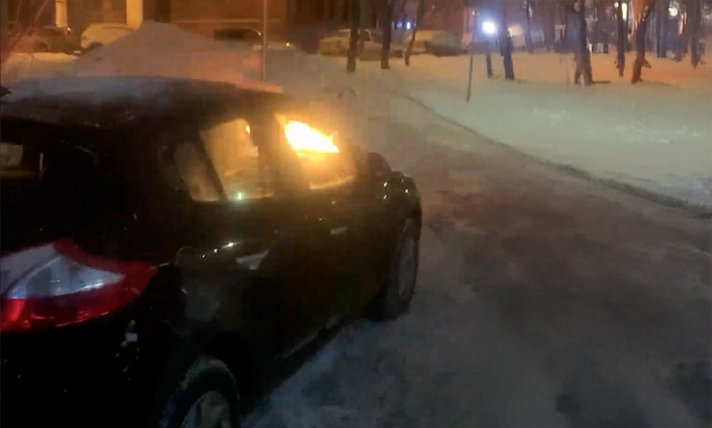 На записи видно, как мужчина с канистрой бензина подошел к черной иномарке, припаркованной возле магазина. Он облил бампер автомобиля, а затем поджог, после чего скрылся с места преступления. Судя по тому, что кадры «мести» следователю, посмевшему предъявить обвинение Мурдиеву, были размещены в Telegram-каналах башкирских националистов, снимали они же.