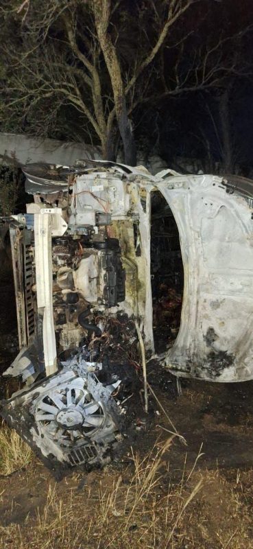 После столкновения французская легковушка, в которой находилась семья из четырех человек, съехала в кювет, завалилась на бок и загорелась. Очевидцами пусть и не сразу, но удалось сбить пламя.