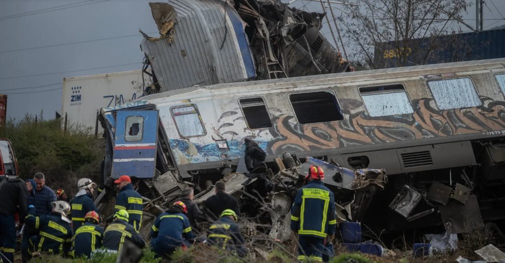 1 марта поезд с примерно 350 пассажирами столкнулся с грузовым поездом недалеко от города Ларисса на севере Греции. Авария произошла, когда пассажирский поезд выходил из туннеля. Четыре вагона с пассажирами сошли с рельс, при этом первые два полностью были уничтожены. Сразу после столкновения начался пожар.