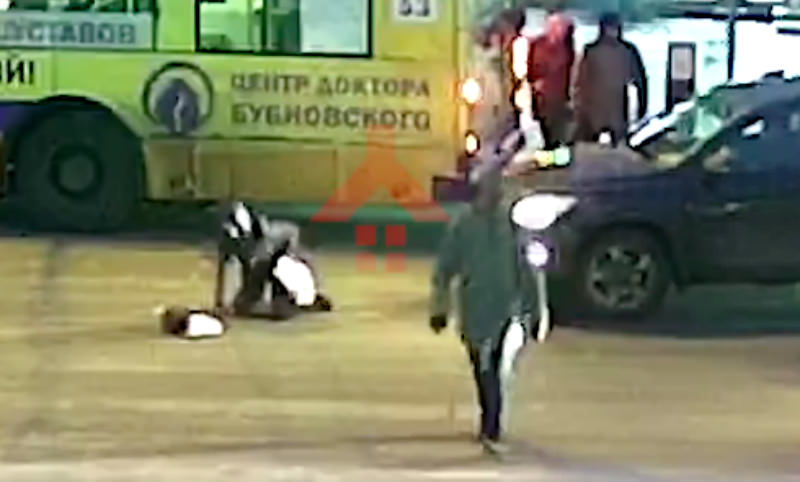 От удара в бок женщина полетела на асфальт, немного проскользнув по льду. Однако затем она ловко поднялась на ноги и пошла дальше. При этом женщина даже не взглянула на водителя, который совершил наезд.