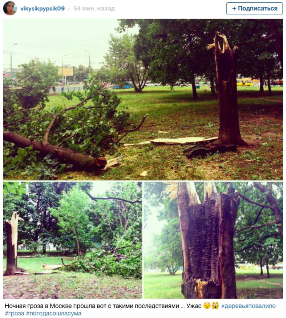 Между тем, по информации на 8 утра, в результате падения деревьев и ударов молнии пострадали четыре человека в Москве и три жителя Можайского района.