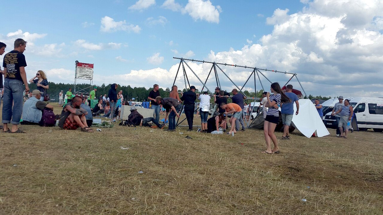 На место сбежались оперативники, которых там было немало (технически инцидент произошел за пределами «Нашествия» - у входа, возле касс и стойки, где продавались билеты на электрички, но там также дежурили полицейские, частная охрана и ОМОН, обеспечивающие порядок), сразу же подъехала скорая. Пострадавшая от госпитализации отказалась, хотя очевидно чувствовала себя нехорошо. Уже через несколько минут работники фестиваля начали разбирать вышку.