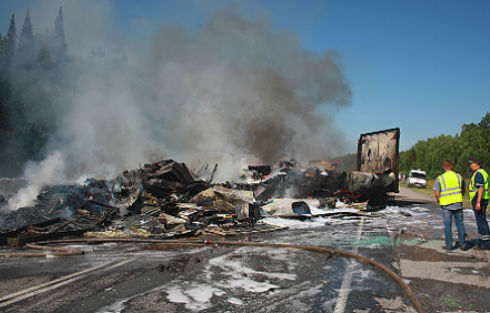 Сотрудники правоохранительных органов просят всех, кто видел аварию в Козульском районе, обращаться в МВД. Необходимы записи с регистраторов проезжавших мимо машин. Фура полностью выгорела, а в автобусе устройство установлено не было.