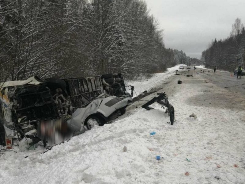 ДТП произошло днем 3 января на 120 км автодороги М-8 «Граница Российской Федерации-Витебск-Гомель-граница Украины». Водитель иномарки Renault выехал на встречную полосу для обгона и врезался в автобус. От удара экскурсионный транспорт перевернулся.