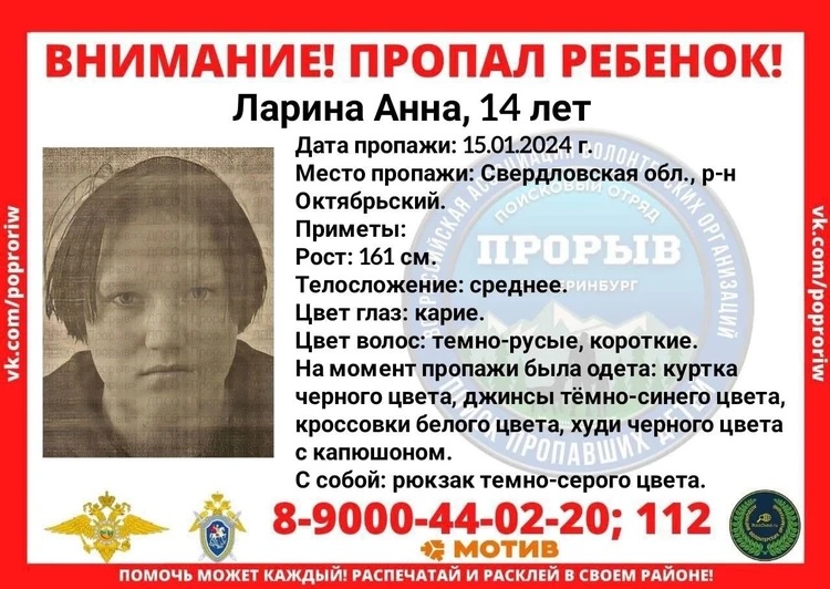 На Ане была чёрная куртка, худи, тёмно-синие джинсы и белые кроссовки. С собой у девочки был тёмно-серый рюкзак. Особые приметы: рост - 161 см, среднего телосложения, тёмно-русые короткие волосы и карие глаза.