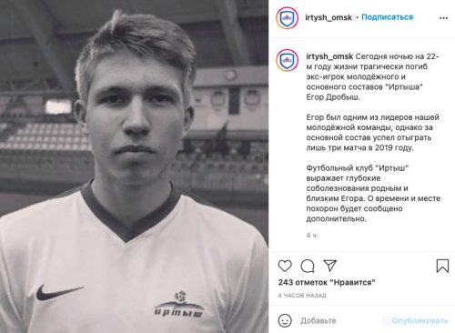 Трагически оборвалась жизнь молодого футболиста Егора Дробыша - бывшего игрока клуба «Иртыш». О трагедии, которая произошла в ночь с 26 на 27 января в Омске, сообщила пресс-служба ФК, за который выступал спортсмен. 21-летний Дробыш был одним из лидеров молодежной команды, но успел сыграть за основной состав только три матча в 2019 году.