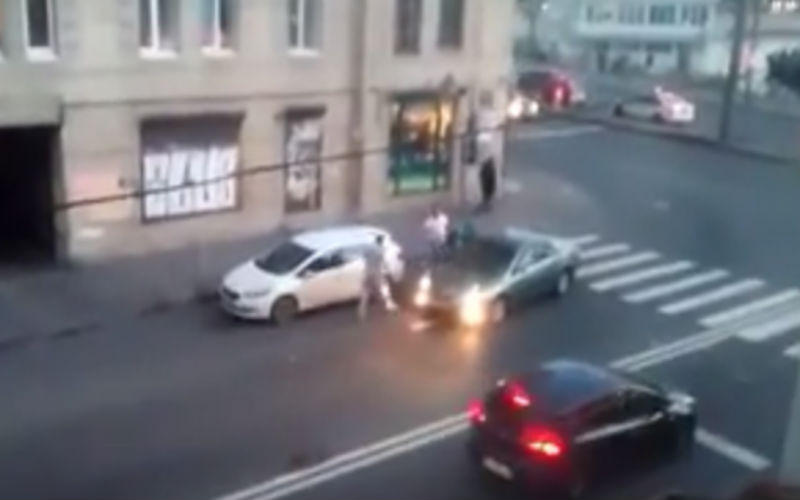 Конфликт между водителями и пешеходами в Петербурге перешел в жесткую драку. Не сумев решить вопрос мирно, двое мужчин выскочили из салонов своих автомобилей и принялись избивать переходивших через дорогу молодых людей.