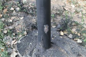 Похитители болгаркой спилили несколько секций и сняли ворота.
