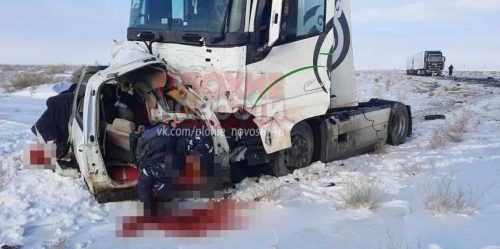 На кадрах, опубликованных в сети, видно, что фура двигается по своей полосе, когда ей на встречу вылетает белый минивэн. Столкновения избежать не удалось. Находившиеся в минивэне люди погибли на месте. Как сообщается, авария могла произойти из-за состояния дорожного покрытия - в регионе прошли сильные снегопады.