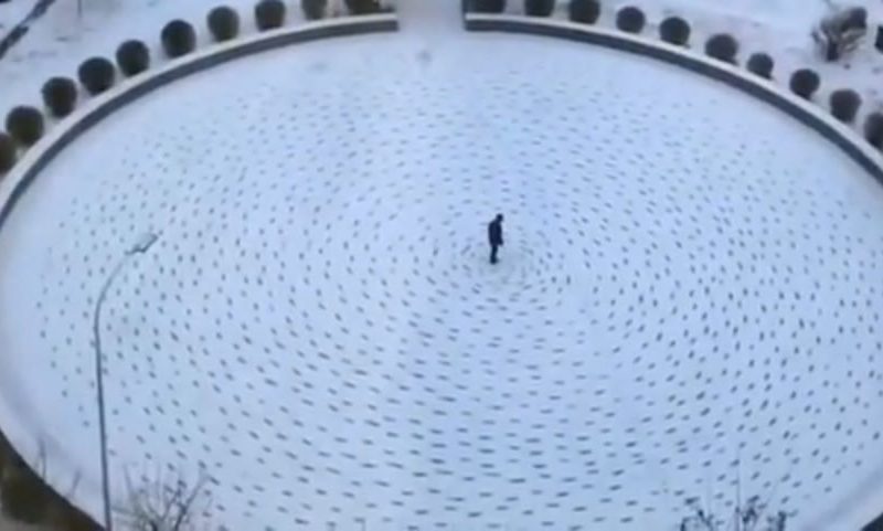 Видео"Минималистический концептуализм" неожиданно "вытоптал" на снегу человек от скуки.