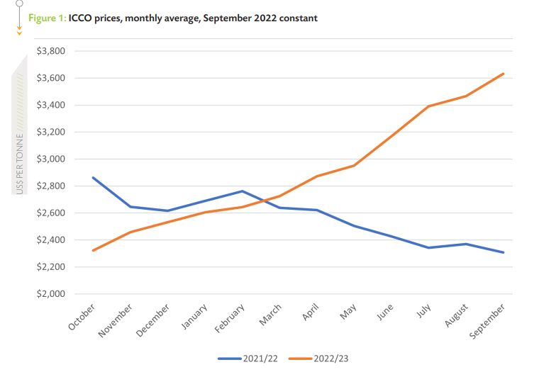 По прогнозам экспертов, цены на какао-продукты и шоколад к концу 2023 года и началу следующего года в России могут подорожать примерно на 35-50%.