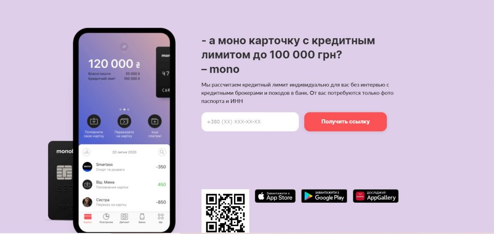 Современный и модный Monobank – один из тех, кто задает тренды на украинском рынке финансовых услуг. «А моно карточку с кредитным лимитом на 100 тыс. гривен?» – риторически спрашивает банк на главной странице сайта. И сам себе отвечает «Моно». Вот только, как выясняется, «моно, но не всем».
