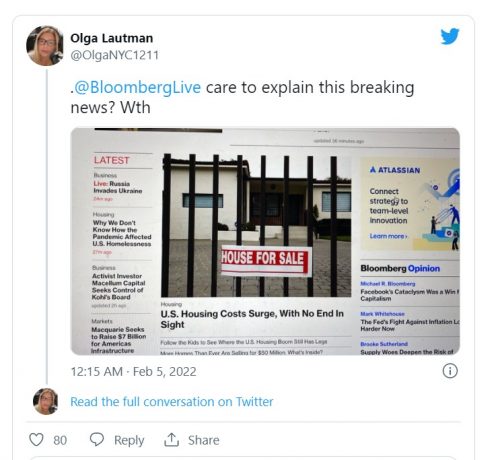 «Мы готовим заголовки для многих сценариев, и заголовок “Россия вторгается в Украину» был непреднамеренно опубликован сегодня около 16:00 (около 0:00 по мск.) по восточному времени на нашем сайте. Мы глубоко сожалеем об ошибке”, — говорится в сообщении агентства Bloomberg.