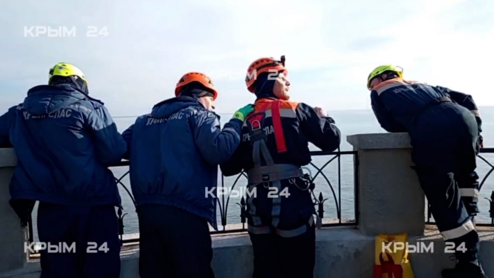 Спасатели подплыли к ней на катере, но чтобы достать её нужна помощью альпинистов, которые уже прибыли на место.
