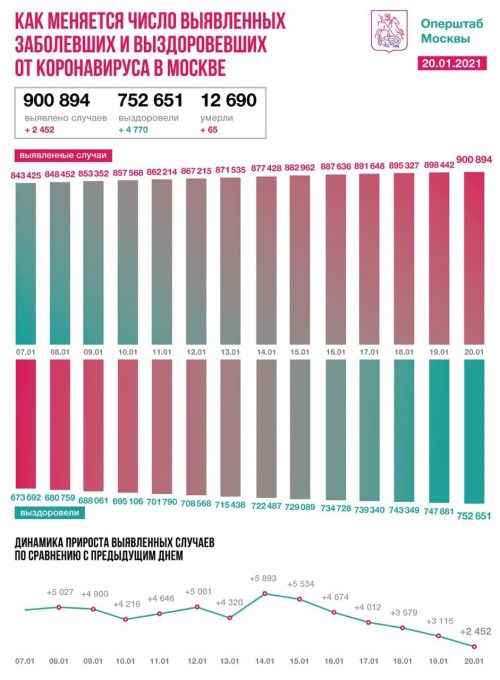 По данным Роспотребнадзора, на сегодняшний день проведено свыше 97,6 млн лабораторных исследований на наличие нового коронавируса. За последние сутки проведено 320 тысяч тестов на коронавирус. Под медицинским наблюдением в целом по России по состоянию на 20.01.2021 остаются 629 145 человек.