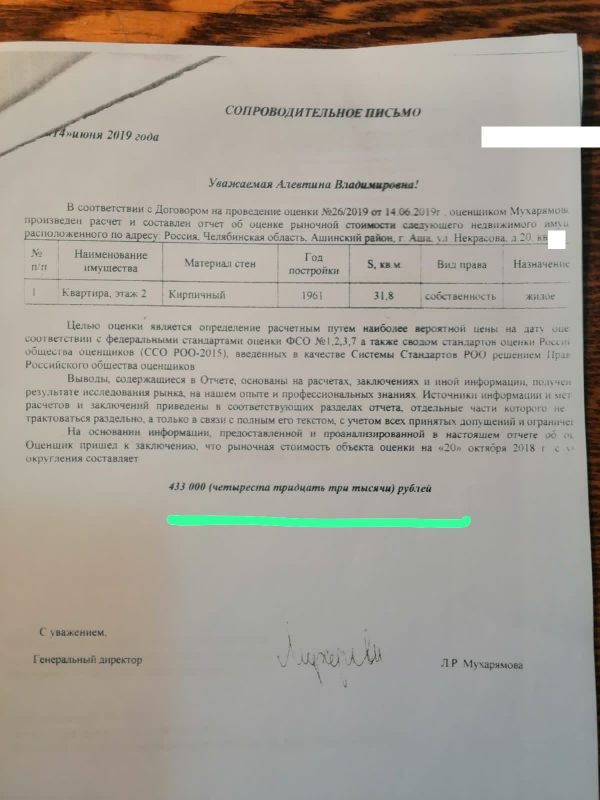 Позже семья заказала независимую экспертизу, которая обозначила рыночную стоимость жилья в 433 тысячи рублей. Еще одна, судебно-строительная, экспертиза заявила цену в 535 тысяч рублей и указала на недостатки, назвав жилье непригодным для проживания.