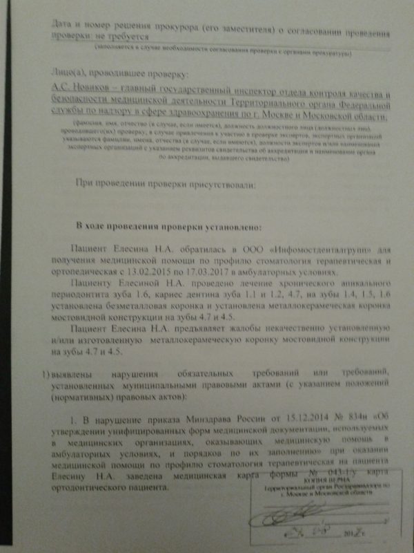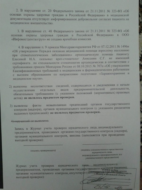 — В заключении указано, что ортопедическое лечение было проведено нерационально. У меня есть акт проверки с выявленными нарушениями. АНО «Центр судебно-экспертного
