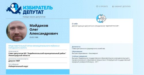 О самом депутате Майдакове известно немногое. Он родился в мае 1988 года, в поселке Рассвет. Имеет высшее образование — окончил Санкт-Петербургский аграрный университет. С 2012 года владеет собственным фермерским хозяйством, разводит грибы, гусей, выращивает картошку. Его семье принадлежит 80 га сельхозугодий. Женат. Депутатом стал в 2019 году.