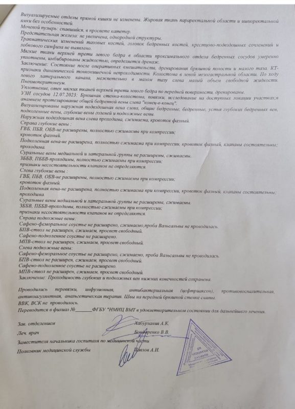 «Моему сыну проведут там сложнейшую пластическую операцию после резекции кишечника бесплатно для нас. Так договорился Уйба В.В.. так же он писал обращение Цаликову Р.Х. о переводе Никиты в ФМБА России. Операция предстоит сложнейшая и не одна. Требуется ещё и запустить работу кишечника. Времени прошло уже 2 месяца. Оперировать нужно срочно. Это мне подтвердили все хирурги, которым я показывала документы о ранении», - добавила женщина.
