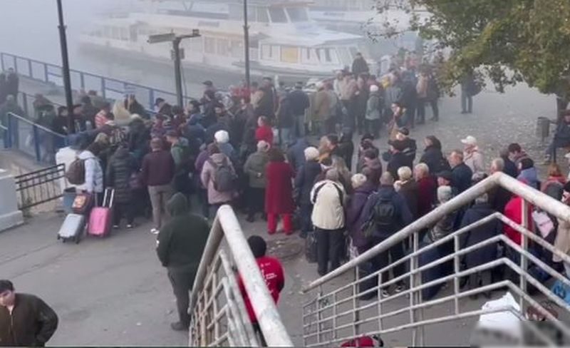 Общероссийский народный фронт показал, как проходит эвакуация. На видео видны очереди из желающих переправиться через Днепр.