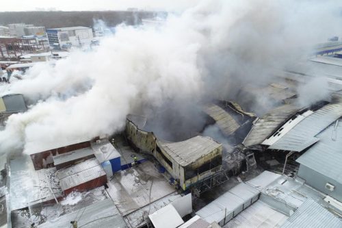 К 8 утра пожар продолжал распространяться, горело уже 2500 «квадратов» территории рынка.