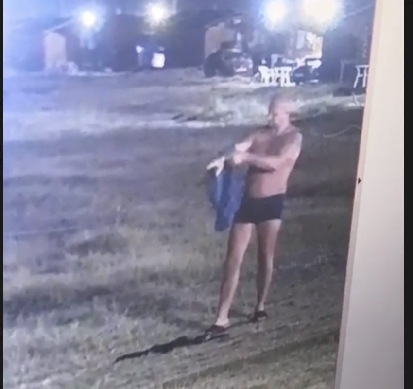 В нашем распоряжении оказалось видео с камер видеонаблюдения, на котором видно, как группа боевиков ретируется с места своей информационной диверсии, увидев мужчину в плавках. Мужик, заподозрив что-то неладное, достал свою «Сайгу» и пошел разведать обстановку.
