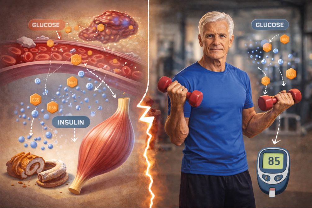 Есть еще один важный момент, о котором редко говорят просто. Мышцы – главный потребитель глюкозы в организме. Когда их мало, сахар крови дольше «гуляет» после съеденной булочки. Это ускоряет развитие диабета второго типа.