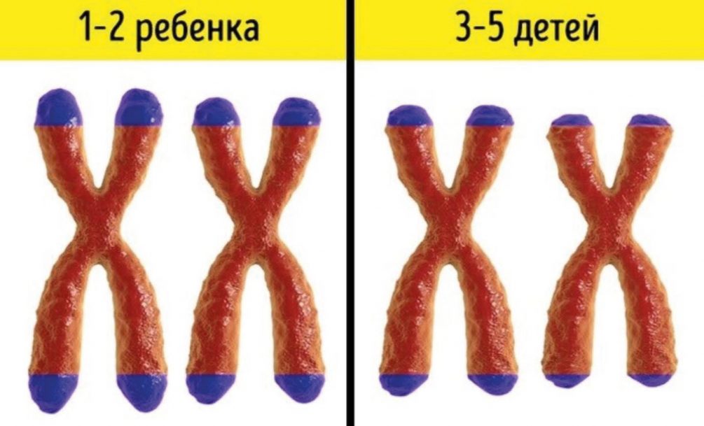 Исследования показывают, что теломеры многодетных женщин короче, чем у тех, кто остановился на одном-двух детях