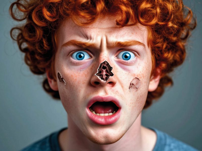 Дальше – больше: перфорация твердого неба (дыра между ртом и носом!), деформация черепа, «гуммы» (омертвевшие язвы) на коже лица и тела. Лицо превращается в руины – это и есть «гусарский насморк» в финале!