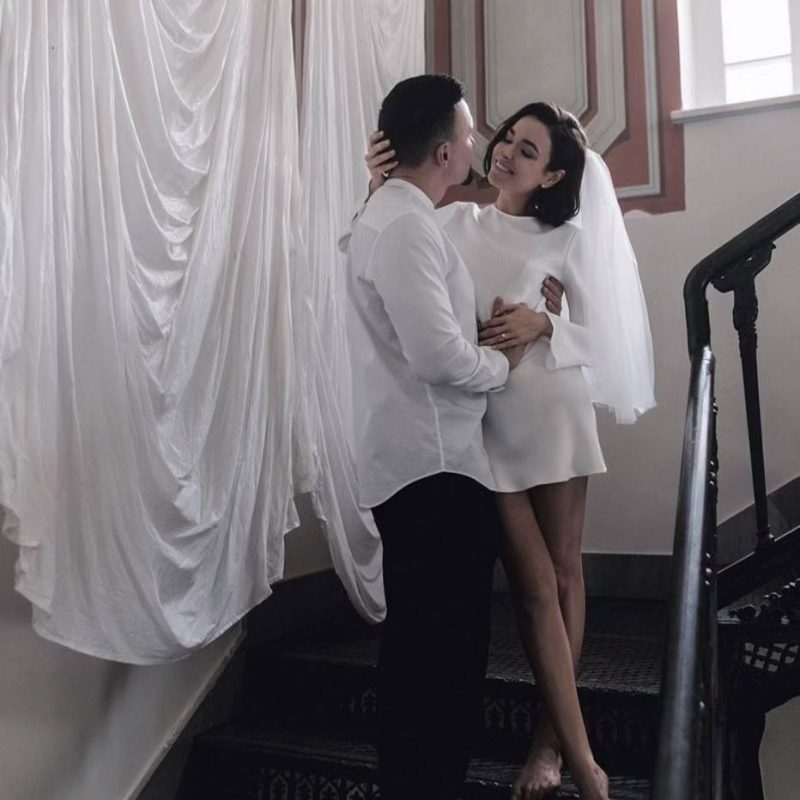 Месяц назад телеведущая Ирена Понарошку объявила поклонникам, что приняла предложение руки и сердца от своего возлюбленного, 46-летнего бизнесмена Руслана Годизова. Телезвезда опубликовала фото в красном платье и обручальным кольцом. Наконец, она призналась, что уже вышла за своего избранника замуж. Ирена с женихом устроили свадебную фотоссессию для обложки журнала. 40-летняя блогерша надела скромное облегающее платье со шлейфом, а Руслан - простую белую рубашку и черные брюки.